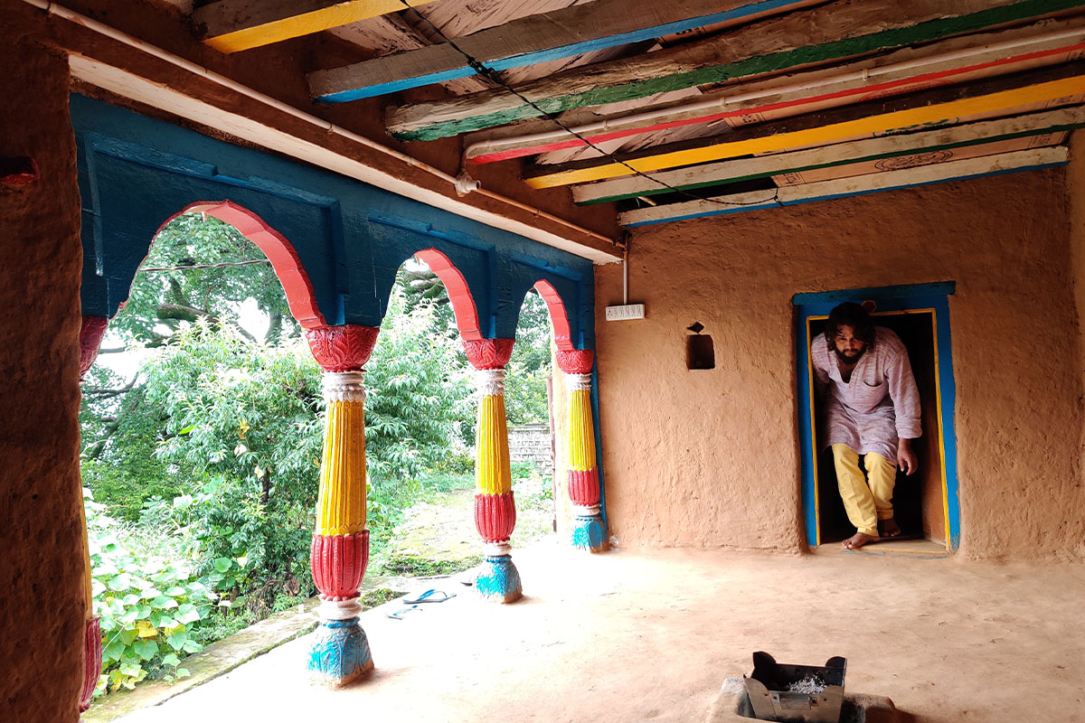 Built using traditional Garhwali architecture, the home features thick stone and mud walls, hand-carved wooden beams, traditional tibari verandas, and earth-based interiors that create a naturally grounding atmosphere.